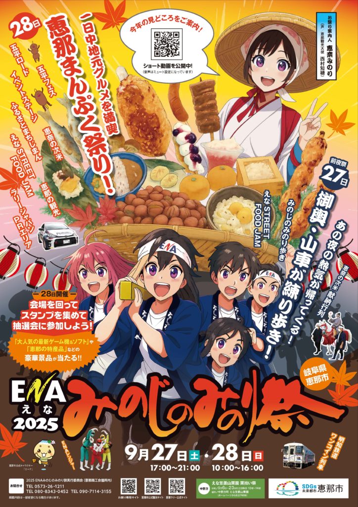 今年のチラシでは、復活した御輿と恵那のグルメをぎゅっと詰め込んだ 「グルメ御輿」 を表現し、まさにみのじのみのり祭の魅力が詰まったデザインにしました✨