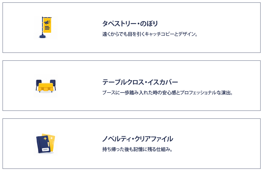 展示会ブースは、いわば「企業の顔」です。単品でツールを発注すると、